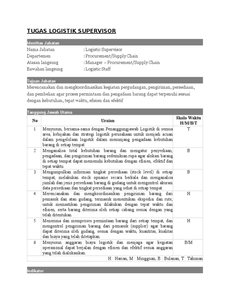 Kriteria Tugas Dan Tanggung Jawab Supervisor Distribusi Logistik Media Scm