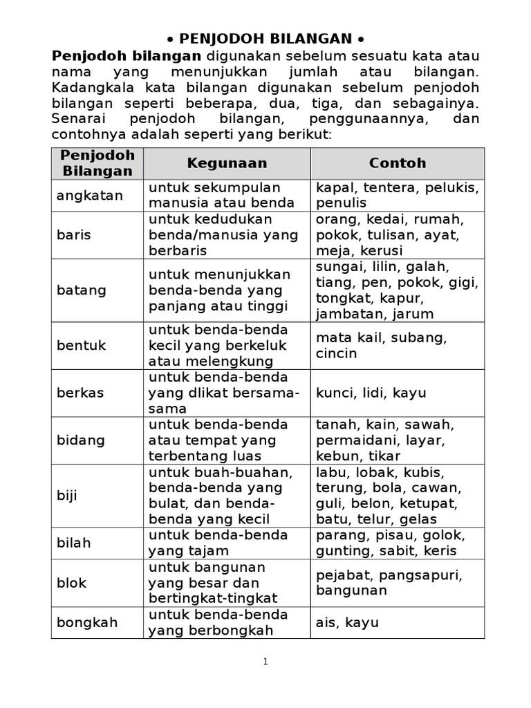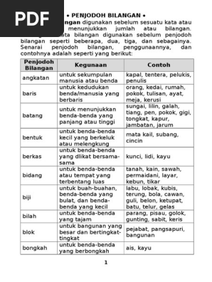 Tingkatan 1 Bahasa Melayu Penjodoh Bilangan Sumber Pengajaran